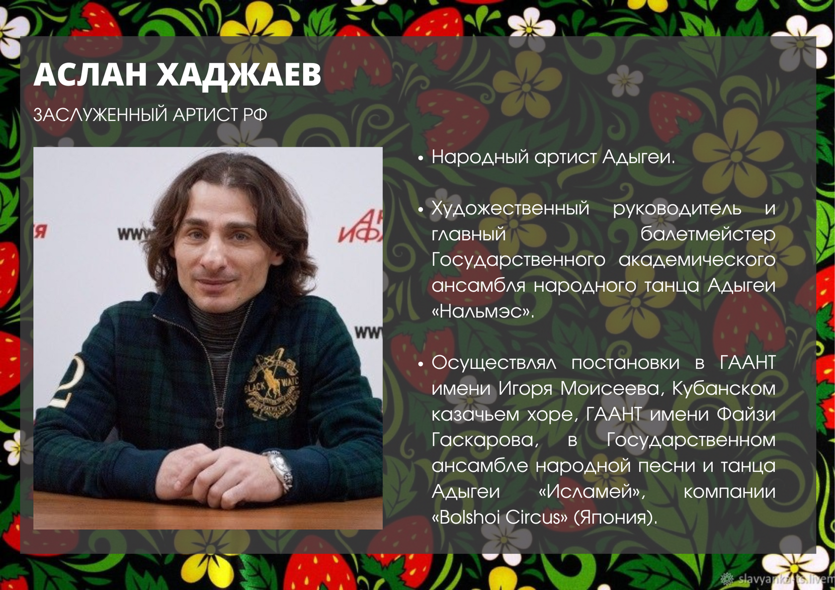 Лауреат Всероссийских и международных театральных и хореографических конкурсов.