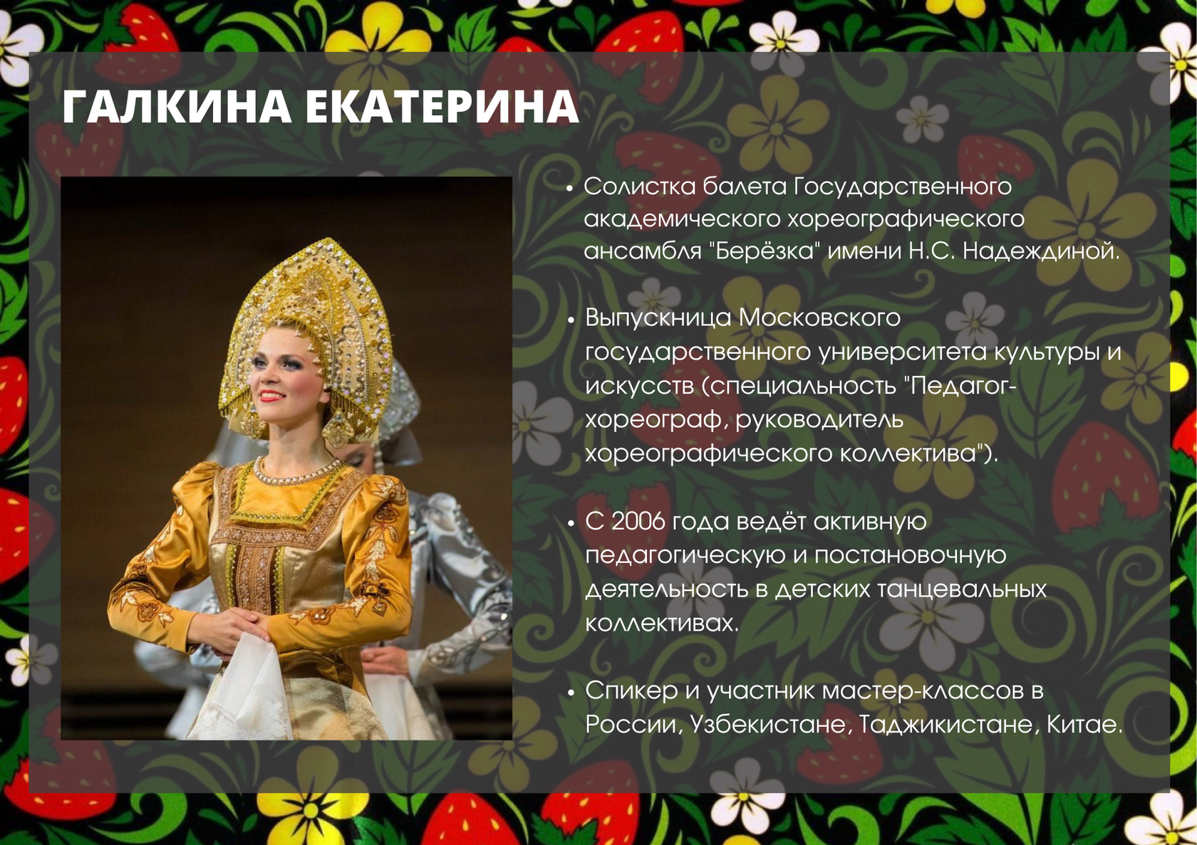 Балетмейстер, педагог высшей квалификационной категории.