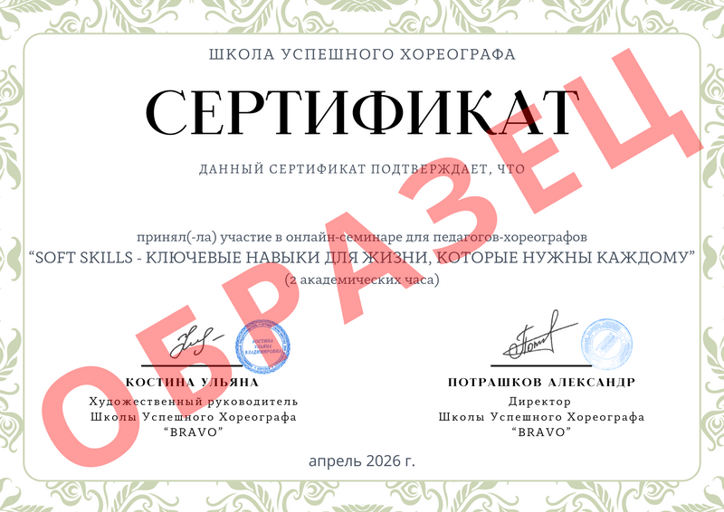 Сертификат участника семинара "Soft Skills - ключевые навыки для жизни, которые нужны каждому"